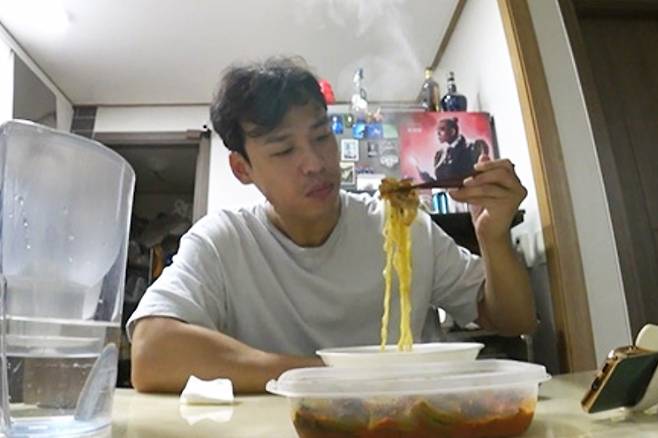 아침에는 흰쌀밥, 달걀 스크램블, 명란젓을 차려 먹었으며, 저녁에는 부추전과 냉수육, 막걸리로 푸짐한 한 상을 차려 자취 15년 차의 실력을 자랑했다.