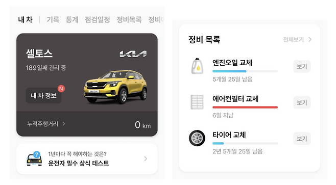 2. 내 차 소모품 '교체주기' 확인하기