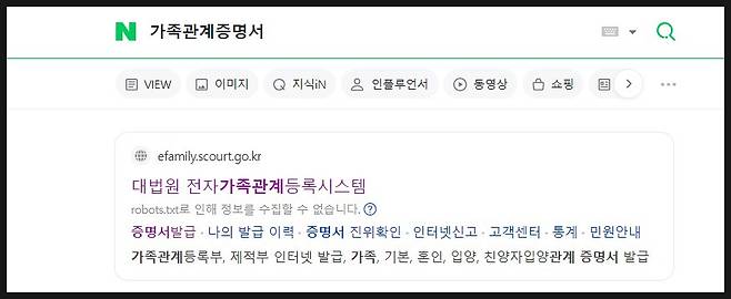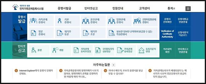 가족관계증명서라고 검색하면 대법원 전자가족관계등록시스템이 나옵니다.