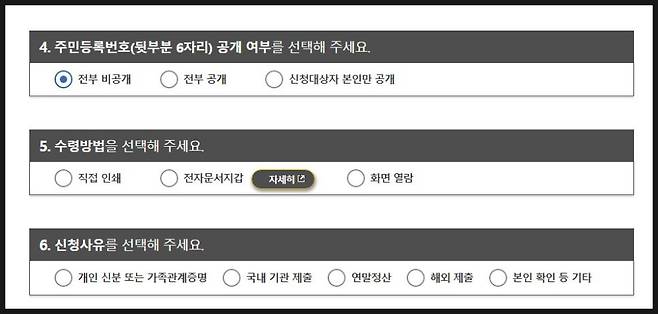 신청서 작성 및 발급과정 진행 후 발급 옵션에 따라 전자문서지갑, 열람 중에 선택하면 됩니다.