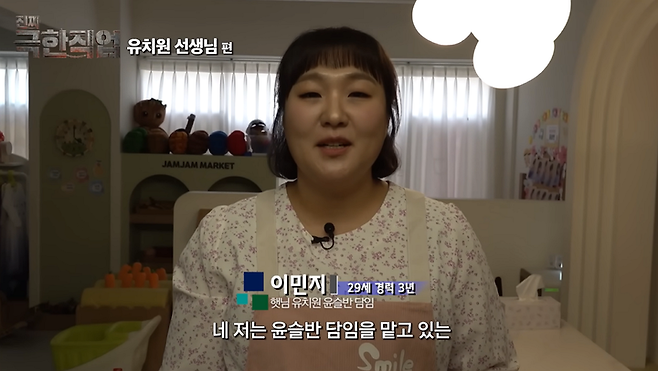 사생활 간섭에 대한 뼈 있는 농담도 던졌다. 압구정 로데오에서 교사를 봤다는 제보에 '클럽에 간 것 아니냐'는 추궁을 받자, 이민지 교사는 학부모 비위를 맞추며 당황하는 기색을 숨기지 못했다. 점심시간조차 아이들의 호출로 식사를 제대로 마치지 못하고, 마지막 아이를 하원시킨 밤늦은 시간에도 교구 제작과 알림장 작성 등 산더미 같은 잔업에 시달리는 모습은 현직 교사들의 깊은 공감을 자아냈다.