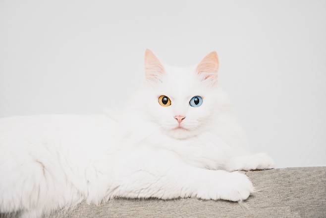 다만, 터키쉬 앙고라 중에서도 흰 털에 푸른 눈을 가졌다면 난청에 걸릴 확률이 높은데요. 그 이유는 흰 털과 파란색 눈을 결정하는 유전자가 청력과 밀접한 관련이 있어서 그렇습니다.