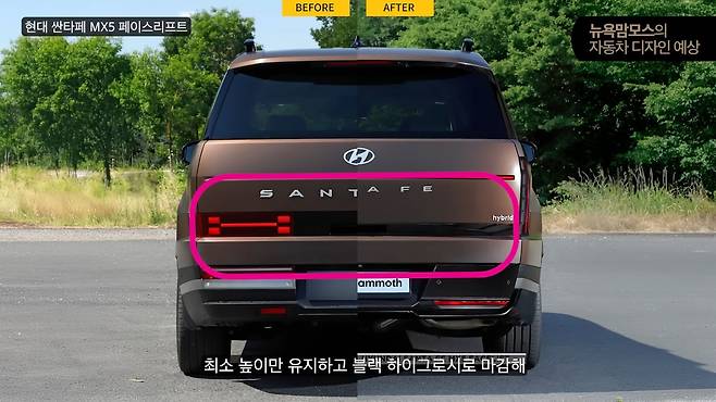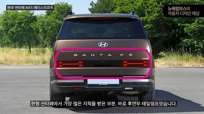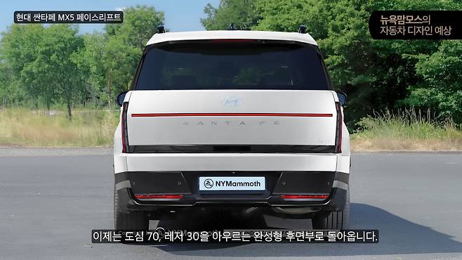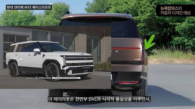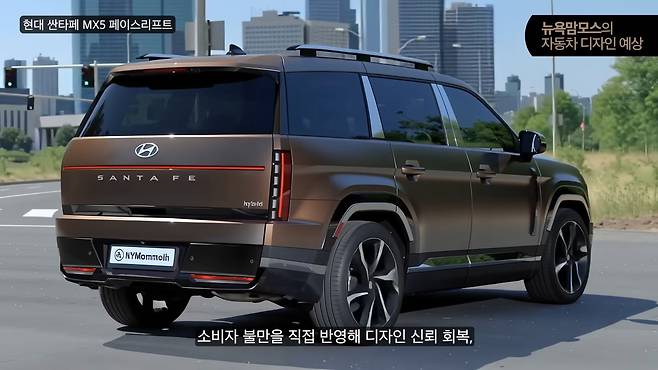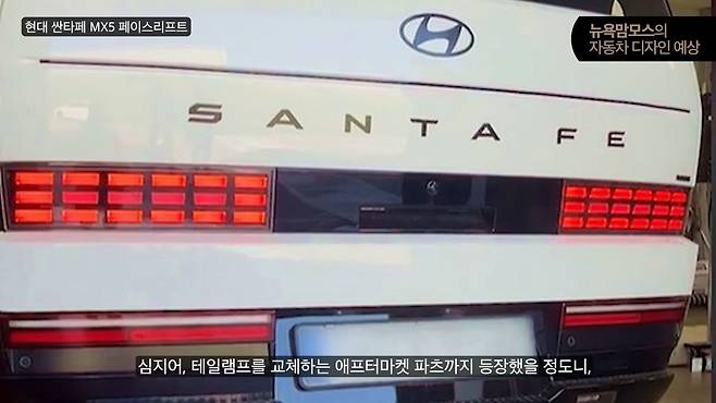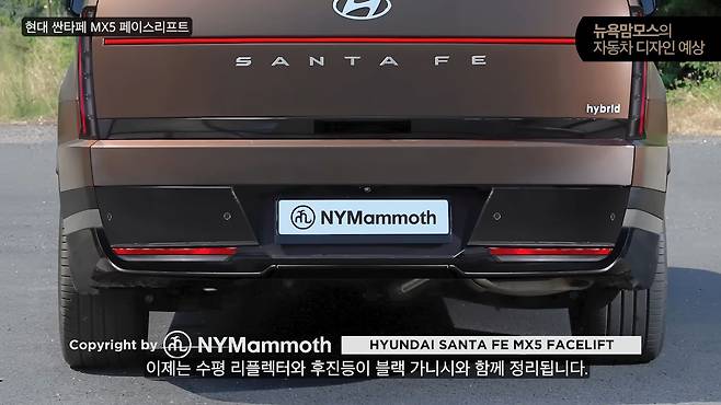 현대자동차 싼타페 MX5 페이스리프트 모델의 위장 테스트카가 포착된 가운데 뉴욕맘모스에 의해 후면부 렌더링이 공개돼 관심이 집중되고 있다. 특히 기존 모델에서 가장 많은 비판을 받았던 후면부 디자인이 대폭 개선될 것으로 예상되면서 소비자들의 기대감이 높아지고 있다.