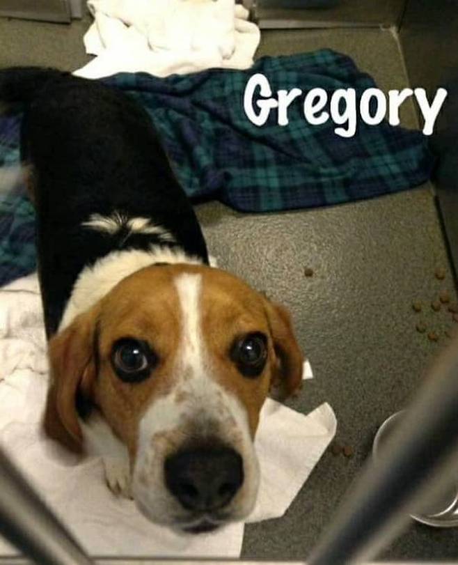 "비글 강아지 그레고리는 자신이 안전하다는 걸 알고 있어요. 우리는 녀석을 건강하게 돌보고 그가 받을 자격이 있는 사랑과 행복한 미래를 줄 것입니다. 이 사진이야말로 우리가 동물을 구하는 이유를 보여줍니다"