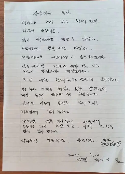 지난해에는 결혼 28주년을 맞아 차인표가 신애라에게 향해 작성한 편지 한 장이 공개됐는데요.