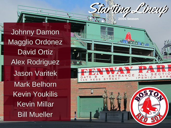 지금은 거대자본을 앞세운 LA 다저스가 리그 최강팀이자 모두의 견제를 받고 있지만, 2000년대엔 뉴욕 양키스가 ‘악의 축’이란 별명을 가질 정도로 슈퍼스타들을 끌어모으며 최강 팀으로 군림하고 있었습니다. 보스턴은 양키스를 맹렬히 추격하지만, 2%가 부족해 항상 2등에 머무르는 팀이었습니다. 여기에 더해 80년 넘게 우승과 거리가 멀었던 ‘밤비노의 저주’에 시달리던 보스턴 팬들의 간절함이 극에 달했던 시절입니다. 마치 KBO리그의 한화나 롯데 팬들이 갖고 있는 정서가 비슷하다고 보면 될 것 같네요.