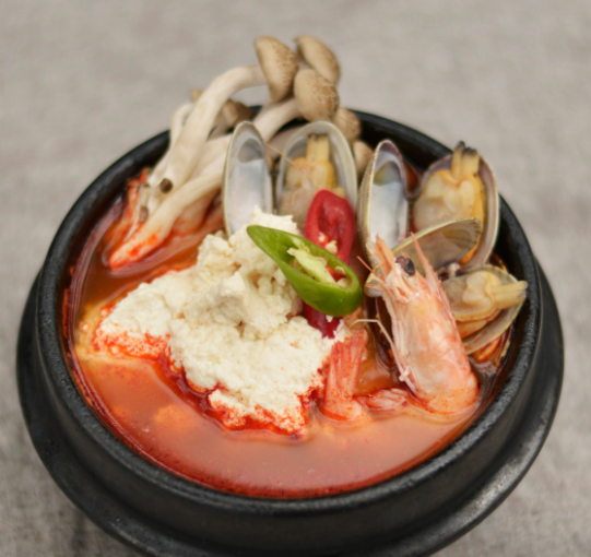 맷돌순두부찌개 (12,000원)얼큰한 국물에 부드러운 순두부 가득, 달걀은 따로 제공