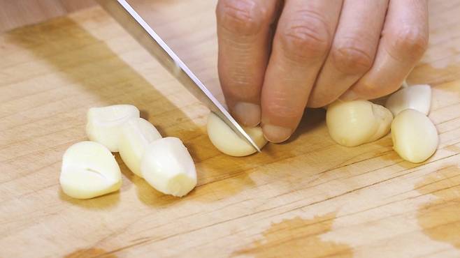대파는 절반으로 자르고, 양파는 넓적넓적하게 썰어 놓으세요. 마늘은 절반으로 자르세요.