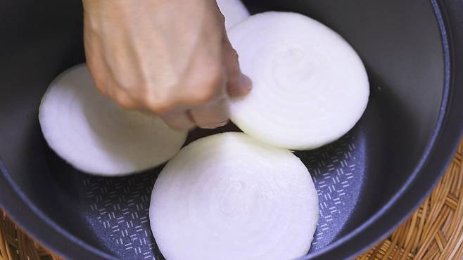 냄비가 준비되었다면, 가장 아랫부분에 양파를 깔아 놓으세요.