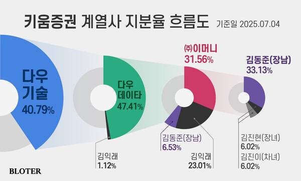 키움증권은 향후 감사위원 선임, 경영 의사결정, 내부통제 시스템 운영 등에서 기존처럼 절대적인 영향력을 유지하기가 어려워졌다. 그동안에는 김 회장 등이 다우기술과 다우데이타에서 확보한 높은 지분율을 기반으로 주총에서 안정적으로 주요 안건을 통과시켰지만, 3%룰이 적용되면 소수주주가 의결권에 더 큰 영향력을 행사할 수 있다. 김 회장과 가족, 특수관계인이 보유한 지분과 의결권으로도 이사회 구성 등 경영승계 계획을 주도할 수 없게 될 가능성이 커진 셈이다.