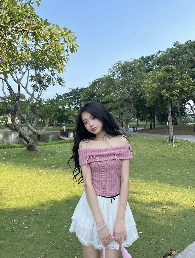 오픈숄더의 매력은 쇄골 라인을 자연스럽게 드러내면서 목선을 길어 보이게 만들어주는 데 있어요.