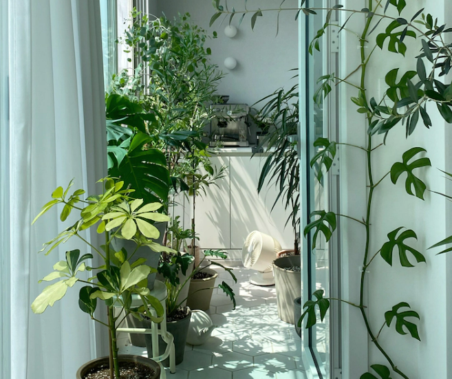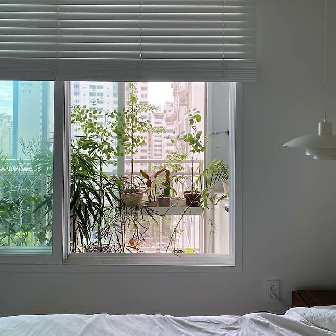 유리를 깨끗한 통유리로 교체하고 시트지 작업을 했어요. 따뜻한 봄이 올 때부터 식물들을 들이기 시작했죠. 아침에 일어나 식물이 바로 보일 때나 자기 전에 가만히 앉아 바라볼 때 정말 힐링 되는 기분이에요.