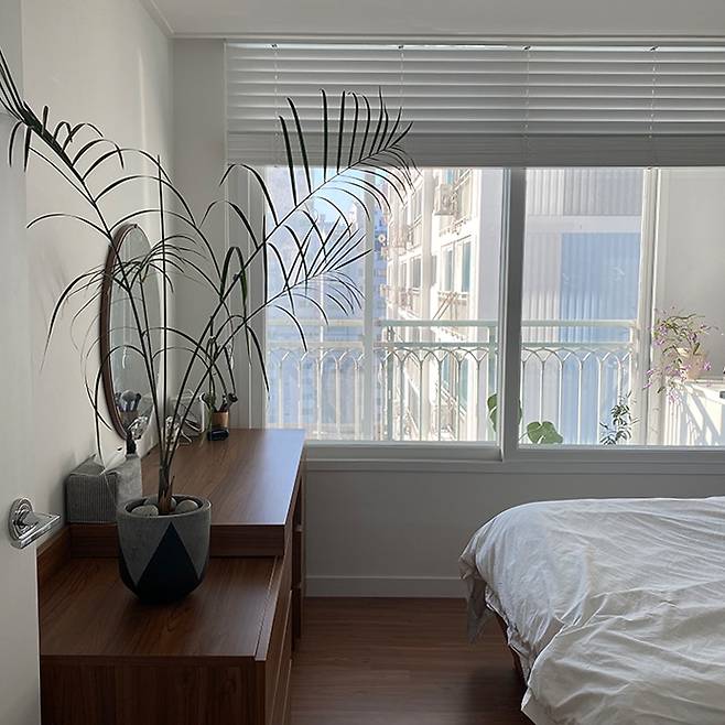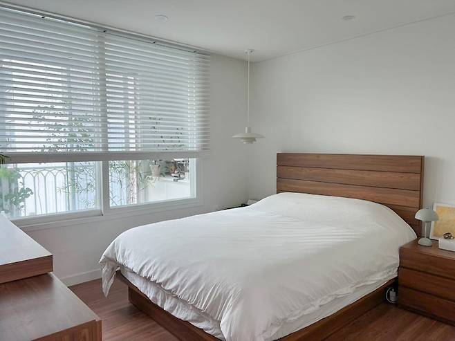 남편은 잠에 무척 예민해요. 새벽에 자다가도 제 뒤척임에 깨기도 하거든요. 저 또한 신경 쓰는 일이 조금이라도 있으면 잠을 설치곤 해요. 그렇기 때문에 침실은 잠을 정말 잘 자기 위한 공간으로 만들고 싶었어요.