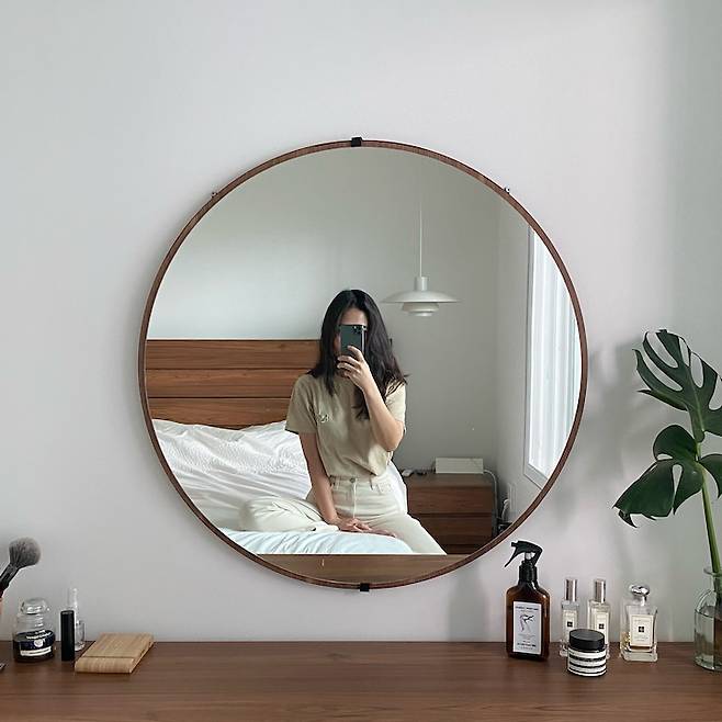 신혼 시작할 때부터 썼던 안방 가구들은 시몬스 제품인데 무겁지도 가볍지도 않은 우드 컬러감이 마음에 들어 골랐어요. 매트리스도 일일이 누워가며 우리에게 제일 잘 맞는 걸로 골랐죠. 오래 쓰고 있지만 질리지 않고 편안함이 아주 좋아요. 오히려 쓸수록 더 마음에 드는 가구랄까요.