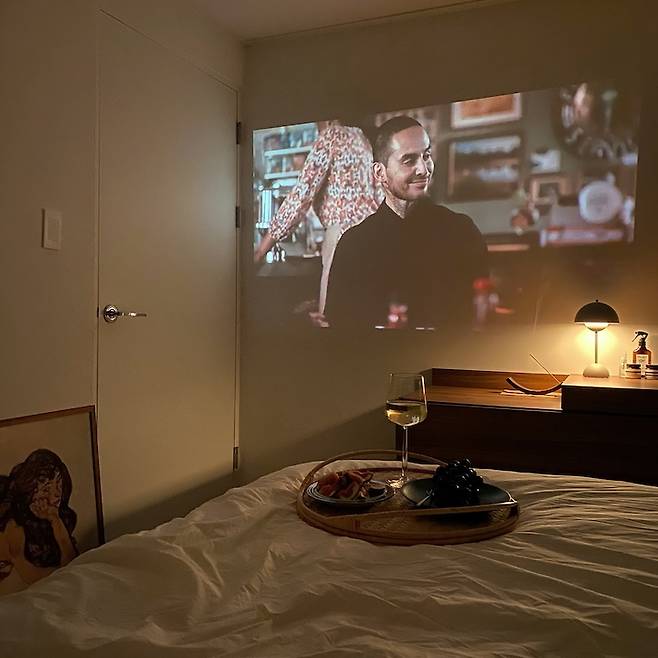 가끔은 침실에서 영화관 분위기를 내요. 빔을 틀고 좋아하는 과일을 먹으며 드라마나 영화를 보죠. 최근엔 인센스 스틱에 빠져서 기분에 따라 켜기도 하고, 비오는 날 켜두면 감성 폭발이에요.