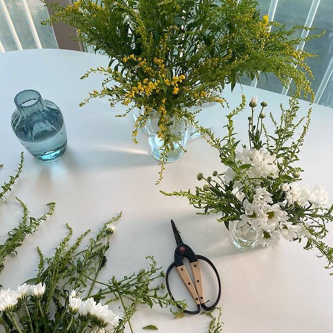 뿐만 아니라 꽃을 만지기도 하고 분갈이를 하기도 해요.