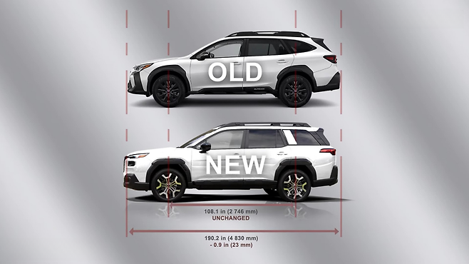 스바루의 핵심 판매 모델인 아웃백은 7세대로 완전히 새로워졌다. 기존의 지상고를 높인 스테이션왜건 형태에서 벗어나 견고한 SUV 스타일로 변모했다는 점이 가장 큰 변화다.
