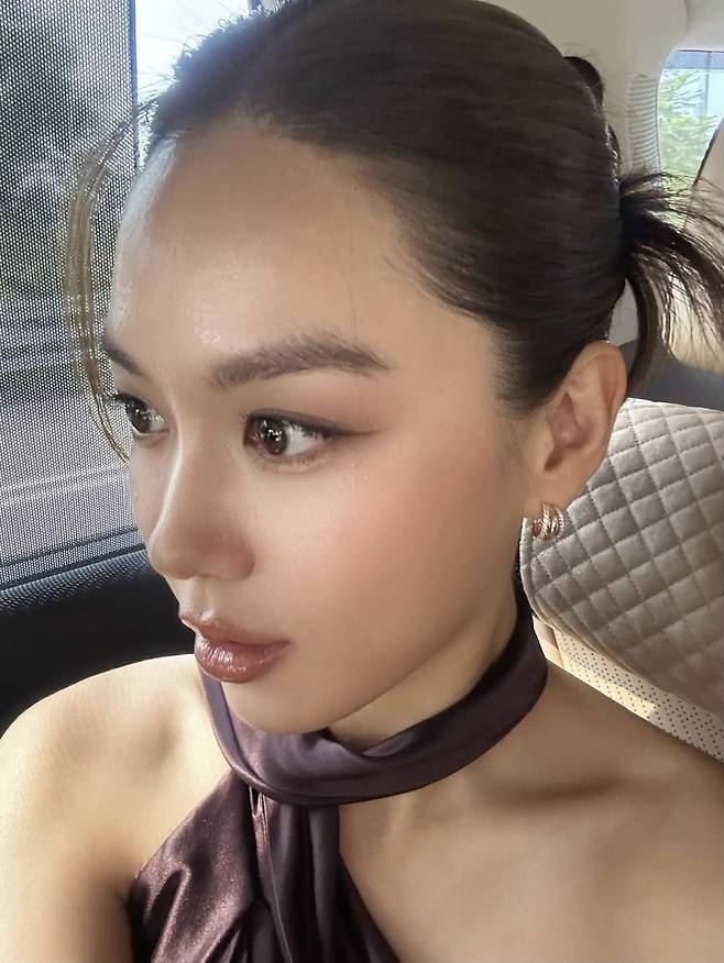 여기에 날렵하게 올려 묶은 헤어스타일은 전체적인 스타일링에 고급스러움을 더했습니다.