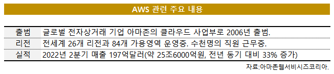최근 수년간 전세계 주요 기업들은 온프레미스(IT 인프라를 자체 데이터센터에 구축하고 운영) 환경에서 클라우드로 전환하는 경우가 늘었죠. 그만큼 AWS의 고객도 증가했고 이는 회사의 실적 상승세로 이어졌습니다. AWS는 올해 2분기 197억달러(약 25조6000억원)의 매출을 기록했습니다. 전년 동기 대비 33% 증가했습니다. AWS는 한국에서 거둔 실적은 따로 공개하지 않습니다.