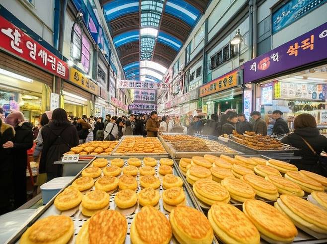 A: 닭강정은 필수 코스이며, 쫄면, 어묵, 만두 등 다양한 길거리 음식을 즐길 수 있습니다.