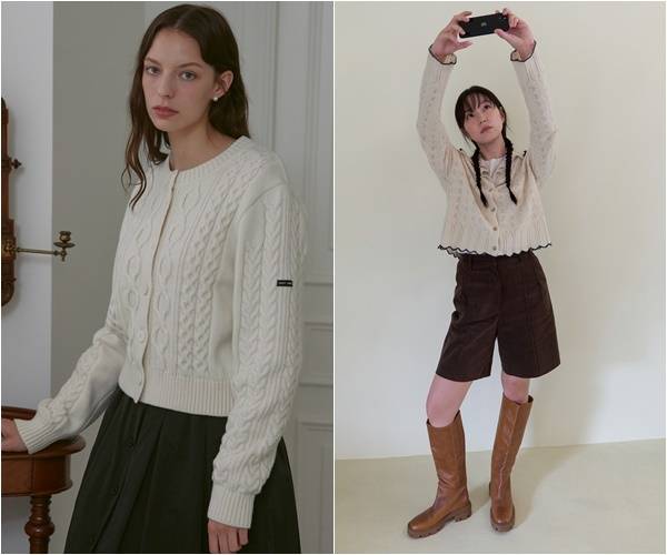아이보리 컬러의 러블리한 니트 가디건이
