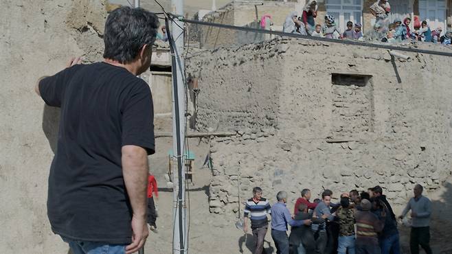 하지만 그런 드라마틱한 상황 때문에 예술적 실천에 외부적 잣대가 덧입혀지지 않나 우려도 있다. 시쳇말로 과대포장된 건 아닌가 하는 의문이 따라붙을 수밖에 없다. 이란 체제를 비판하기 위해 감독이 이용당하는 건 아닐까 의구심도 생길법하다. 감독 자신도 그런 입소문을 모를 리 없다. <노 베어스>는 그런 의문부호에 대응하는 감독의 작가로서의 입장을 한계까지 밀어붙인다.