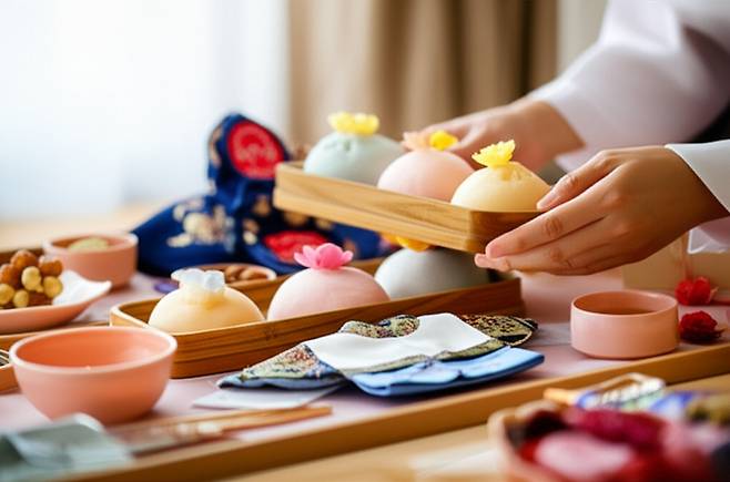 • 병풍 또는 배경: 전통적인 스타일의 병풍이나 깔끔한 배경 천