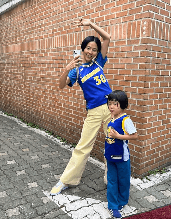 패셔니스타로 잘 알려진 김나영이 코디한 블록코어룩으로 나이키 골든스테이트 워리어스 NBA 스윙맨 저지 티셔츠로 매치했다. 아이와 함께 트윈룩으로 매치해 엄마들 사이에서 많은 화제가 되고 있다. 김나영이 입은 스윙맨 저지에는 curry 선수의 이름과 등번호가 함께 적혀있다. 국내 나이키 매장에는 따로 없고 NBA 전문숍에서 구매가 가능하다. 농구 유니폼을 본인 신체에 맞게 슬림 하게 매치해 코디하였다.