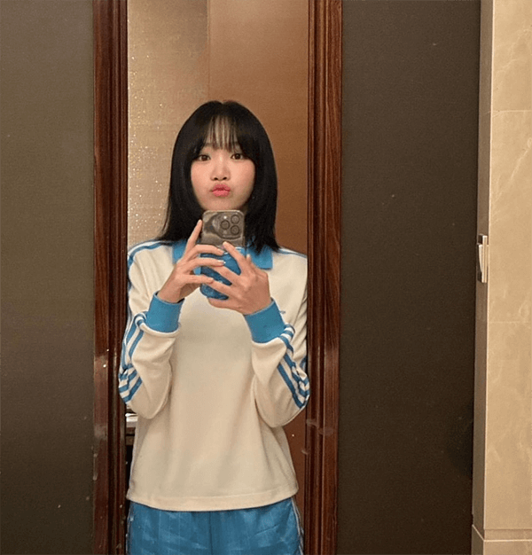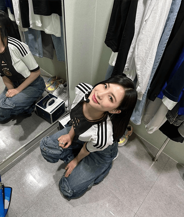 축구팬들 사이에서도 유명할 정도로 축구 팬인 에이핑크의 오하영은 이미 여러 번의 블록코어룩을 즐겨 입었다. 아디다스 맨체스터 유나이티드부터 아디다스 독일 국가대표 22/23 유니폼까지 유니폼과 일상복을 믹스 매치해서 자신만의 느낌으로 해석한 블록코어룩을 선보였다. 이번에 선보인 아디다스 독일 국가대표팀 유니폼은 티셔츠 중간에 아디다스의 3선 라인과 함께 독일 대표팀의 엠블럼이 골드 컬러로 포인트를 준 유니폼이다.