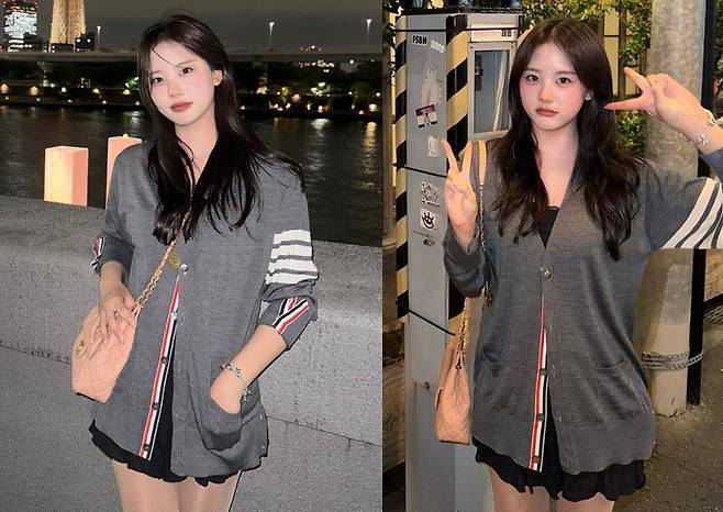 오버핏 그레이 카디건에 블랙 미니 원피스를 레이어드해 꾸밈없는 듯 내추럴한 무드 속에서도 청순하고 힙한 매력을 동시에 뽐냈습니다.