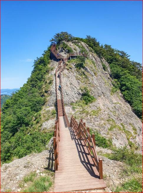 가장 짧은 코스로 초보자에게 적합합니다. 옥녀봉까지 오르는 길은 짧지만, 옥녀봉에서 내려다보는 뷰는 감탄을 자아냅니다.