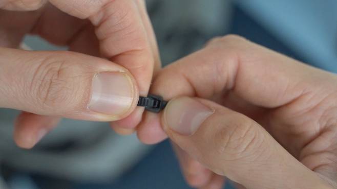 케이블타이를 풀 땐 가위로 끊지 않아도 돼요! 먼저 케이블타이를 뒤로 젖히면 요렇게 연결시켜주는 부분이 보이는데요. 이 부분에 손톱을 끼워 넣으세요.