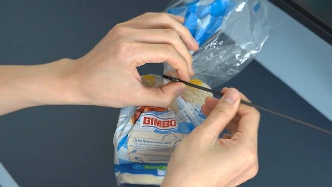 두번째! 바로 비닐봉지 밀봉에 대한 꿀팁이에요. 고무줄이 없을 땐 케이블타이를 이용해 꽉! 조이면 완벽하게 밀봉할 수 있답니다.