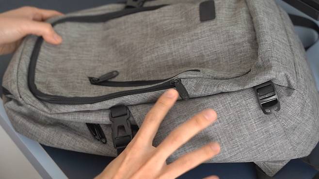 고리 2개가 고정 되어 있기 때문에 가방을 열기는 쉽지 않답니다. 여기서 한가지! 그러면 어떻게 케이블타이를 풀어야 하나 걱정이 되게 되는데요.