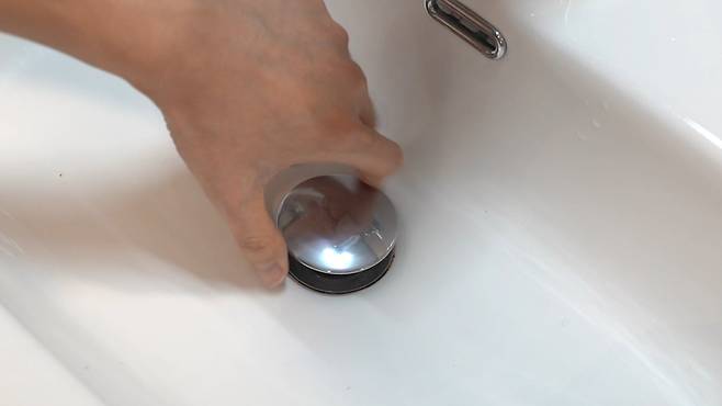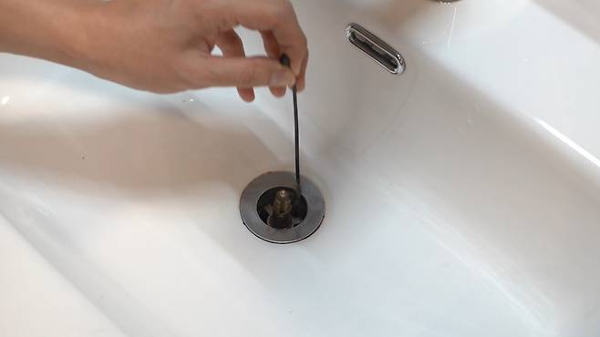 마지막! 세면대 청소하기. 세면대 내부가 막히면 손가락을 집어 넣기 힘들어 청소가 잘 되지 않는데요.