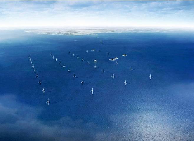 | ▲ 한국서부발전이 태안 앞바다에서 추진되고 있는 해상풍력발전에 적극 나서고 있다.(사진 해상풍력발전 단지 조감도) |