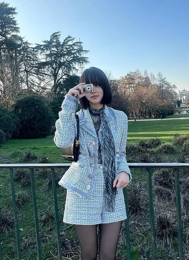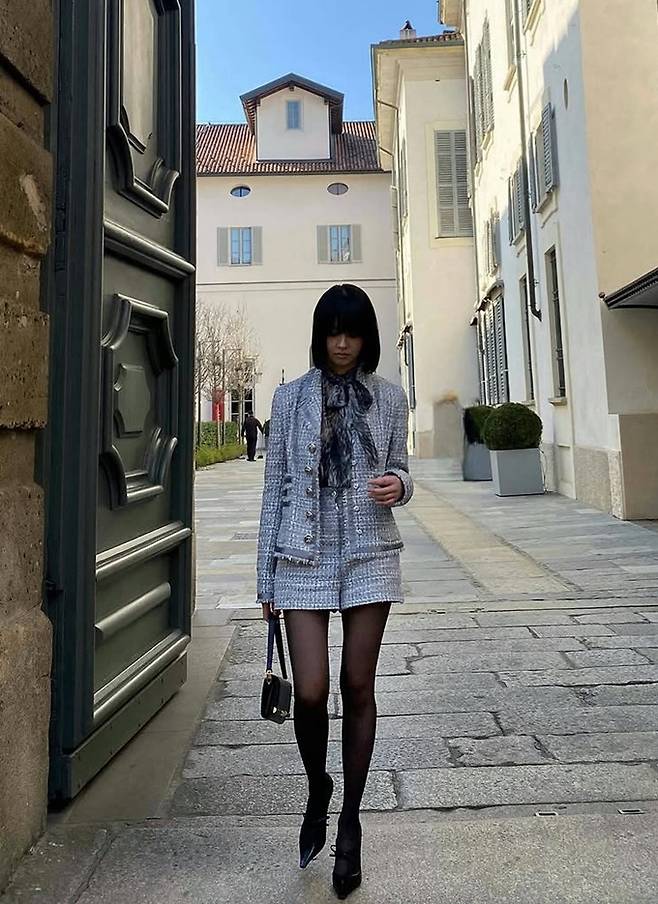 배우 김소현이 밀라노에서 트위드 셋업 스타일로 청순 미모를 뽐냈다.