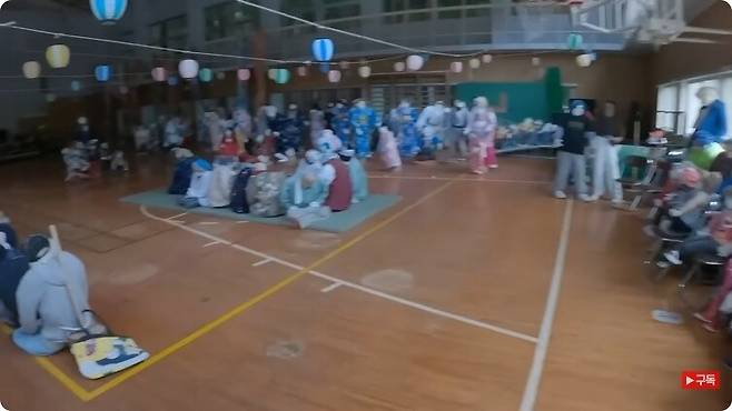 였지만 아무래도 좀 무서웠는지 잽싸게 강당에서 도망쳐나온 유튜버.