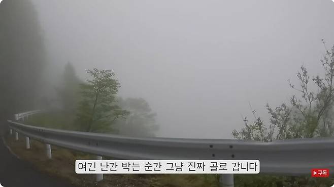 안개는 가득하고, 해는 점점 저물어가고, 산 한중간이라 가드레일 아래는 바로 낭떠러지임...