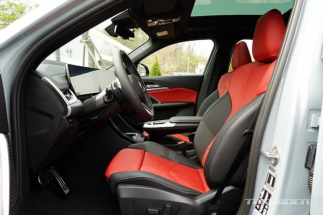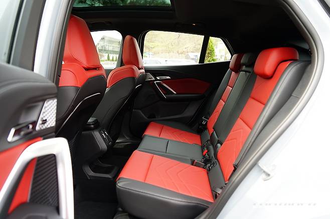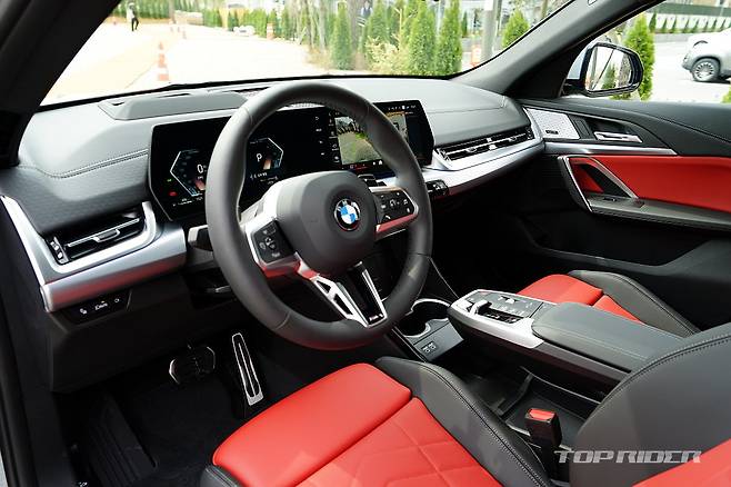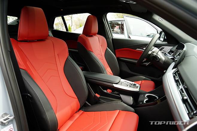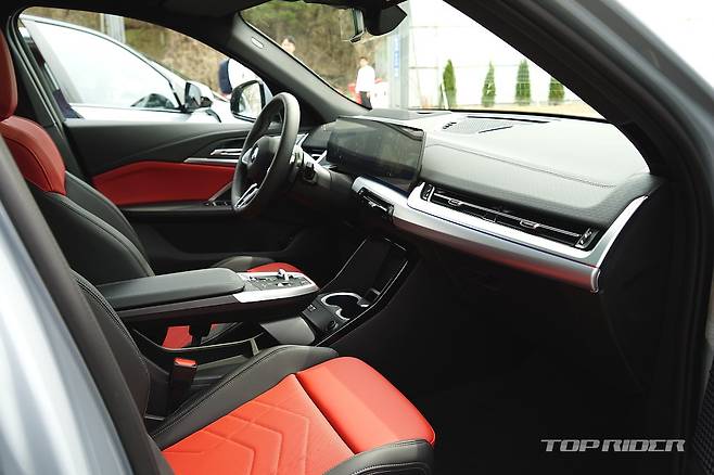 운전석의 시트포지션은 완연한 소형 SUV 구성이다. 디자인만으로는 X2가 X1 대비 전고가 월등히 낮아보이는데, 제원상 수치는 -10mm 줄었다. M 서스펜션을 제외하면 사실상 동일해 1열 공간에서의 착좌감과 공간감은 같다. 쿠페형 스타일을 위해 희생되지 않아 반갑다.