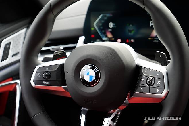실내는 커브드 디스플레이와 새로운 디자인의 스티어링 휠이 분위기를 주도한다. 스포티한 모델인 만큼 레드컬러의 투톤시트와 일체감이 좋다. 실내 소재를 살펴보면 대시보드 상단 등 매끈한 부분은 벤츠의 경쟁차와 유사한 재질인데, 부분적으로 고급화 요소를 추가했다.