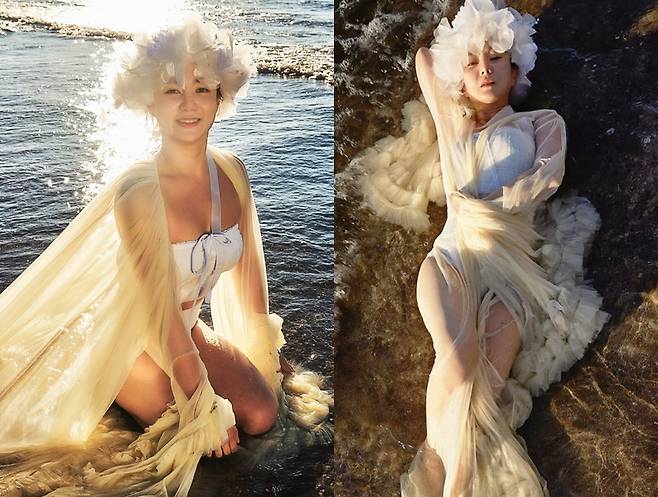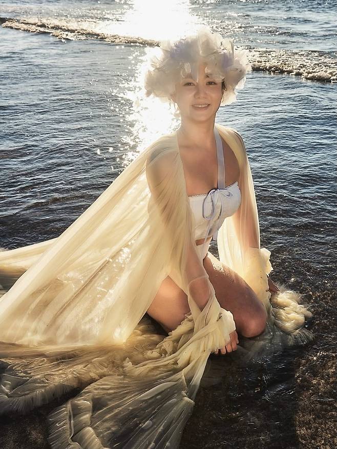 박나래는 바다 위에 펼쳐진 듯한 시스루 드레스와 볼륨 있는 머리 장식을 더해 신비로운 인어공주 같은 무드를 완성했습니다.