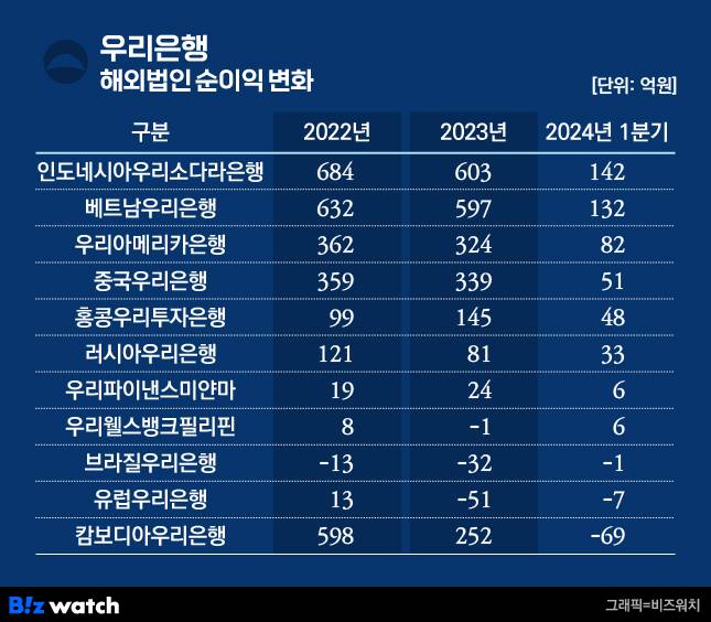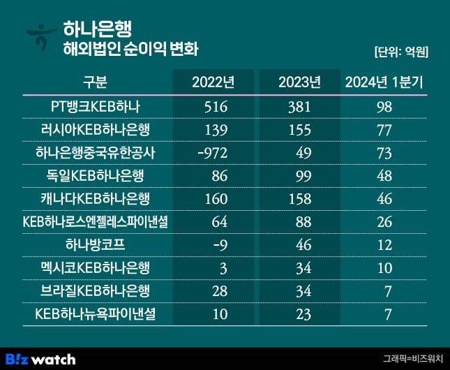 주목할 점은 가장 리스크가 크다고 판단되는 러시아 지역에 진출한 은행 법인들이 '선방'하고 있다는 점이다. 하나은행의 러시아 법인인 러시아KEB하나은행은 2022년 138억원, 2023년 154억원의 순익을 냈다. 우리은행의 러시아법인인 러시아우리은행은 2022년 120억원, 2023년 80억원의 순익을 올렸다.