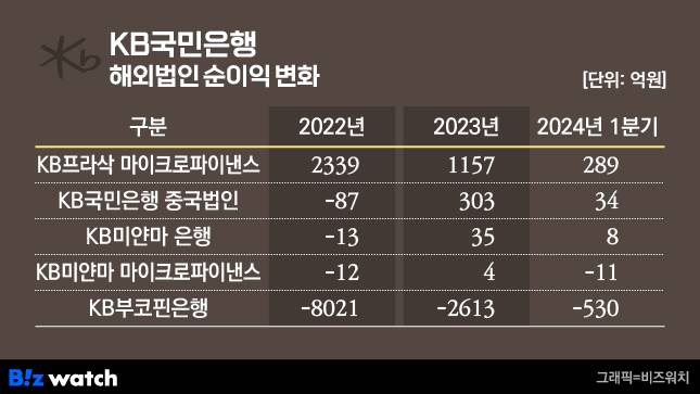 야심차게 진출한 인도네시아 법인 정상화도 고민거리다. KB국민은행의 인도네시아 법인 부코핀은행은 2022년 8020억원의 손실을 냈고 지난해 2612억원 수준까지 줄이기는 했지만 올해 1분기에도 529억원의 손실을 낸 상황이다. KB국민은행이 내년부터가 본격적인 '정상화' 시기라고 내부적 방침을 정한 상황이지만 최근 금융시장을 둘러싼 상황이 녹록지 않아 장담하기는 이르다는 평가다.