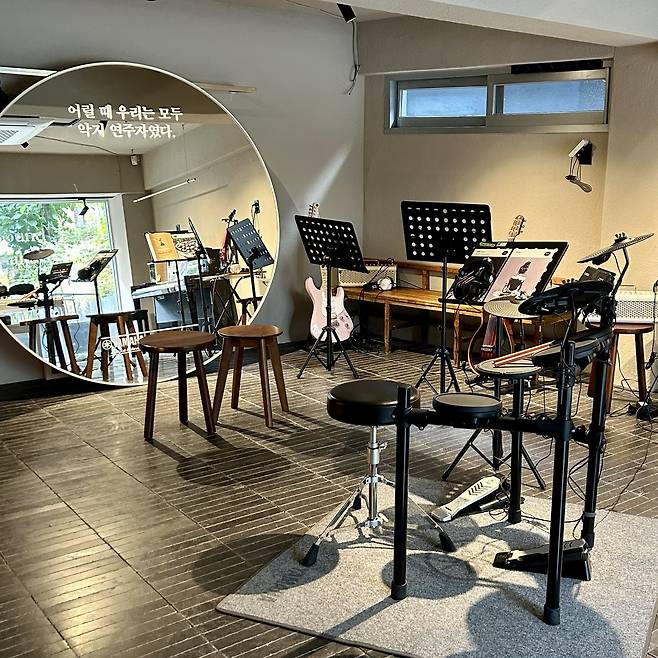 기록물 전시를 다 관람하고 나오면 야마하와의 협업으로 이루어진 체험 공간으로 이어진다. 글과 말로 새로운 시도를 응원하는 밑미와 음악의 시작을 돕는 브랜드 야마하가 만난 것. 이곳에서는 피아노, 드럼, 기타 등 야마하의 악기를 직접 연주하며 어린 시절 추억을 되새길 수 있다. 소리가 헤드셋으로만 나오기 때문에 초보자도 눈치 보지 않고 마음껏 연주할 수 있다.