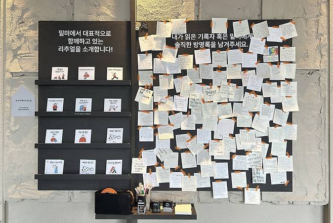 기록물 전시부터 기획자의 책상, 음악 연주 공간까지 알찬 구성으로 이루어진 전시였다. 명상을 즐길 수 있는 옥상까지, 모든 공간을 다 둘러보기에 1시간 30분이라는 시간은 짧게만 느껴졌다. 개인의 진정성 있는 서사보다 마음을 울리는 게 있을까. 누군가 정성스레 써 내려간 이야기를 읽다 보면 이걸 이렇게 한순간에, 힘들이지 않고 읽어버려도 되나 싶은 생각이 든다. 기록을 시도하고 싶은 이에게, 이를 통해 자신을 알고 싶은 이에게 <오프더레코드> 전시는 분명 하나의 힌트가 되어줄 것이다. 전시는 오는 11월 14일(목)까지 진행된다. 사전 예약제로 운영되며, 밑미 홈페이지를 통해 무료로 예약할 수 있다.
