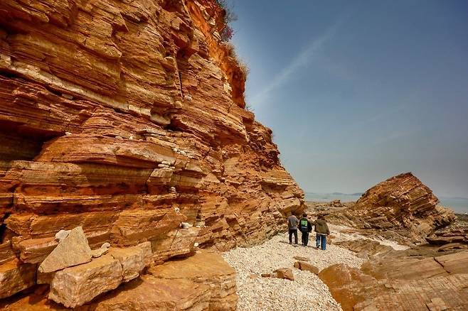 인천 선재도에서 차로 10분 거리에 있는 노가리해변은 최근 아는 사람들한테만 입소문난 곳입니다. 특히 겹겹이 층을 이룬 퇴적암 절벽의 모습은 보자마자 미국 그랜드캐니언을 연상케 하는데요. 탁트인 서해와 맞물린 이국적인 절벽에서 포즈를 잡고 사진을 찍어보세요.