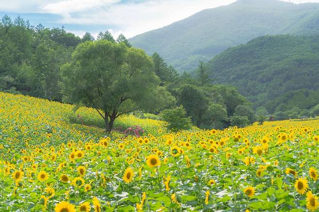 백두대간 매봉산 아래 잡은 구와우마을의 해바라기는 7월 중순부터 8월 중순까지 펼쳐지며, 이 기간 동안 축제도 함께 진행되는데요. 봄꽃보다 화려한 해바라기가 드넓게 펼쳐진 구와우마을에 꼭 방문해 예쁜 사진 한 장 남겨가시길 바랍니다.