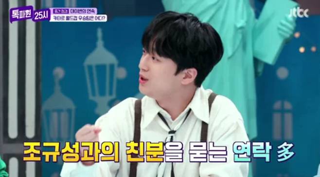 트로트 가수 이찬원이 축구 선수 조규성과의 친분을 묻는 연락에 식은땀을 흘렸다.