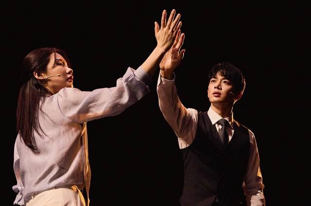 아픈 기억으로부터 벗어나기 위해 스스로를 가둬버린 과학자 ‘태섭’과 자신을 찾아 나섰지만 결국 자신을 가장 괴롭혔던 장소로 돌아오는 ‘지희’의 만남을 그린 2인극 ‘랑데부’가 관객을 만납니다. 프랑스어로 남녀 간의 만남, 혹은 두 개 우주선이 같은 궤도에서 만나 나란히 비행하는 것을 뜻하는 제목처럼 극 중 두 인물은 아버지의 죽음을 겪은 뒤 가까워졌다가 멀어지기를 반복하며 로맨스를 그려나갑니다. 두 배우는 단 한 번의 퇴장도, 의상 교체도 없이 100분을 이끌어갑니다. 공연은 패션쇼 런웨이를 연상시키는 길이 17m, 폭 2.5m의 길게 뻗은 무대에서 펼쳐집니다. 무대 위에 트레드밀(러닝머신)이 설치돼 손이 닿을 듯 말 듯한 두 인물의 심리적 거리감을 시각화한 점이 흥미롭습니다. 트레드밀을 제외하곤 별다른 장치나 소품 없이 극을 가득 채우는 배우들의 연기력도 눈에 띕니다.